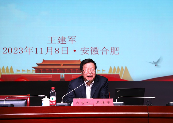 耿学梅在致辞中代表省民政厅、省养老协会对王建军的到来表示欢迎和感谢。她指出,安徽省是较早进入老龄化的省份之一,近年来我省出台了一系列政策,着力推进养老事业与产业协同发展。党的二十大报告也为养老事业和养老产业的未来发展指明了方向。安徽三联学院作为安徽养老协会副会长单位,邀请王建军主任来校作报告,为我们学习贯彻党的二十大精神,推动我省养老事业和产业的发展提供精准指导。